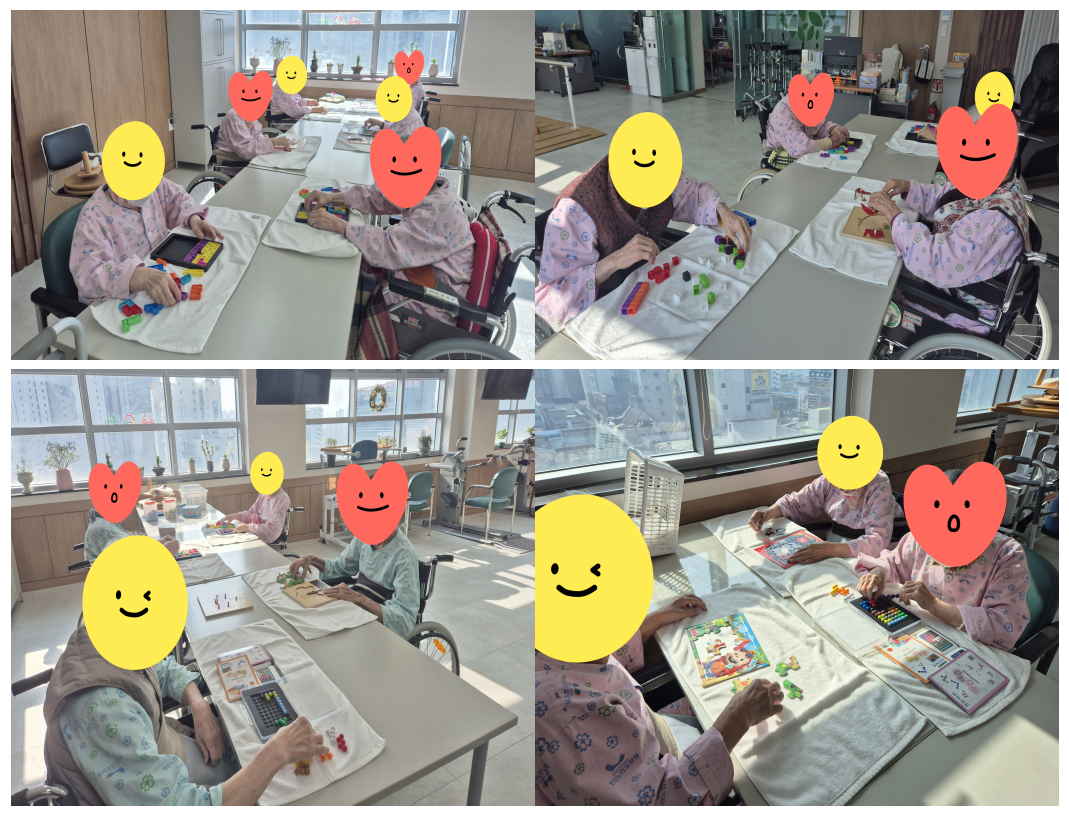 11월 작업치료 한신노인요양원 12-01 27 11월 작업치료 사진 입니다.여러 어르신들을 함께 모셔 그룹 작업치료 제공하고 있으며 어르신의 인지상태와 흥미도, 문제해결 능력에 따라 난이도를 다르게 하여 교구를 드리고 있습니다.혼자 할 수 있는 부분은 스스로 해결하여 완성할 수 있도록 하고 있으며 어려워 하시면 도움 드려 완성할 수 있도록 하여 성취감을 느낄 수 있도록 하고 있습니다. 이전글12월 물리치료 26.01.07 다음글11월 물리치료 25.12.01 댓글 0 댓글목록 등록된 댓글이 없습니다.