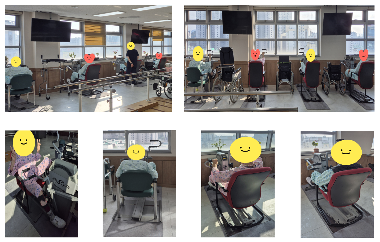 안전하게 이용하실 수 있도록 어르신 개개인의 컨디션을 살펴 무리하지 않는 범위에서 운동할 수 있도록 도움 드리고 있고 처음에는 짧은 시간부터 천천히 시작하고 있으며