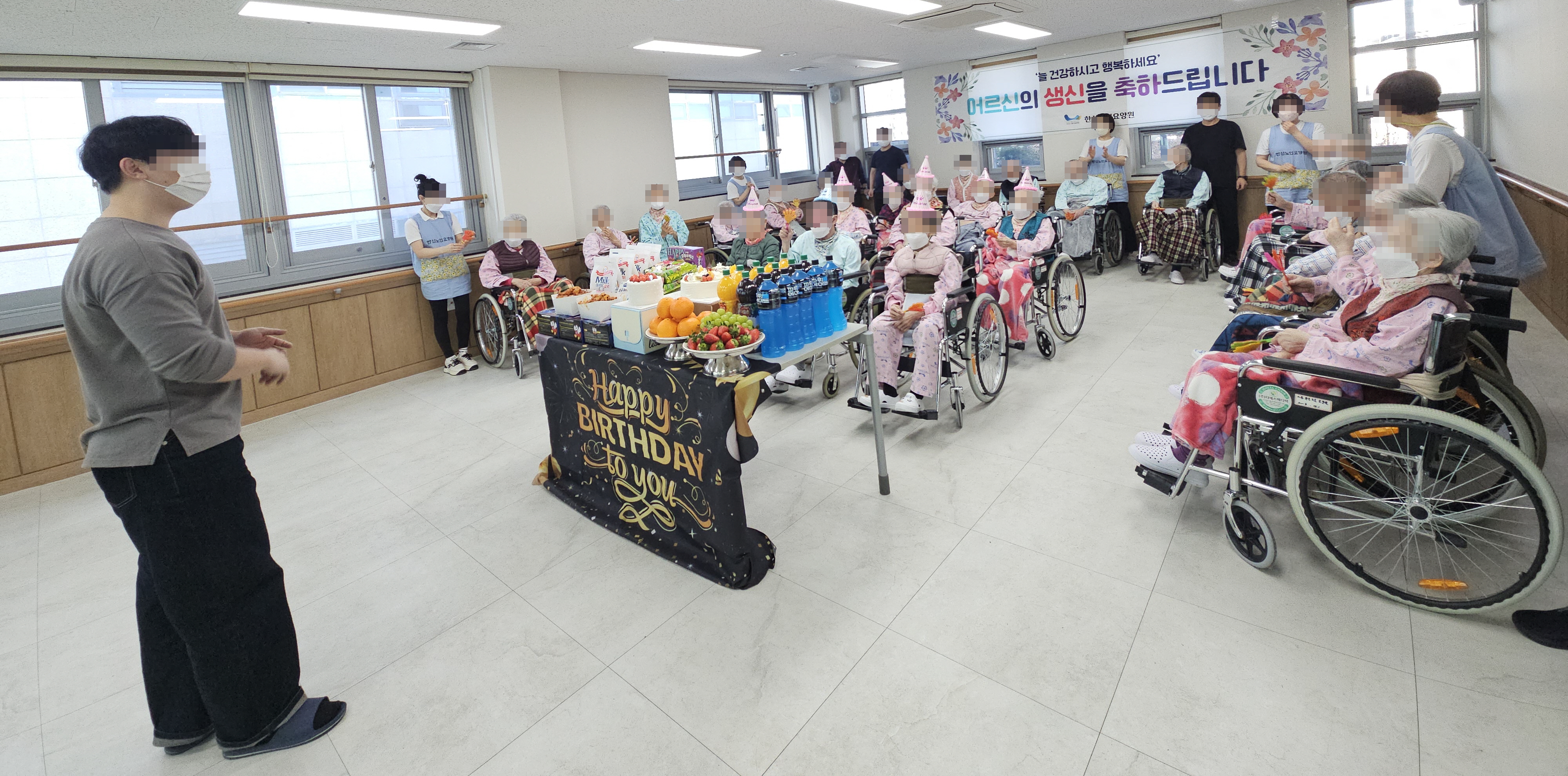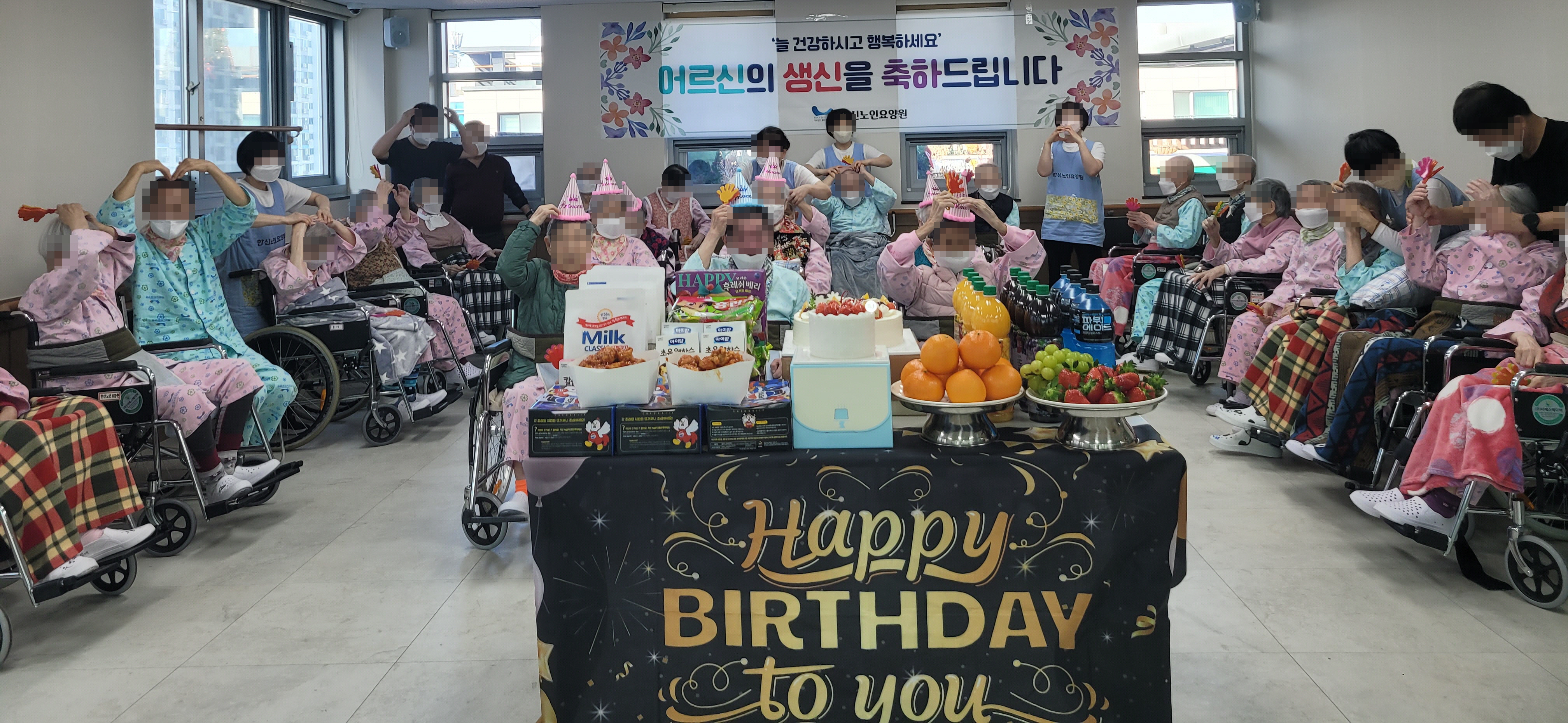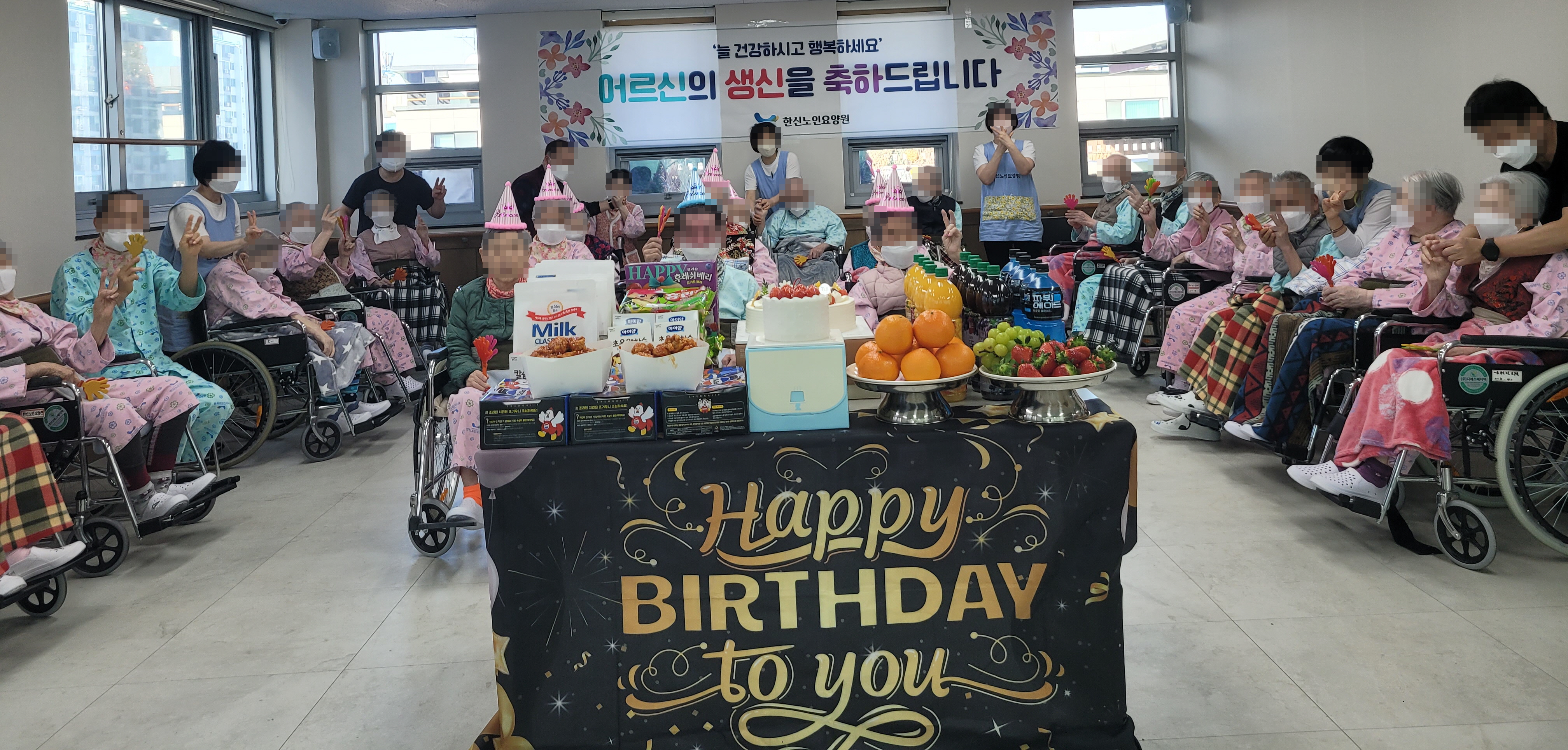 1 안녕하십니까, 한신노인요양원입니다. 본 원에서는 1월 생신인 어르신을 위해 1월 16일(금) 생신잔치를 진행하였습니다.