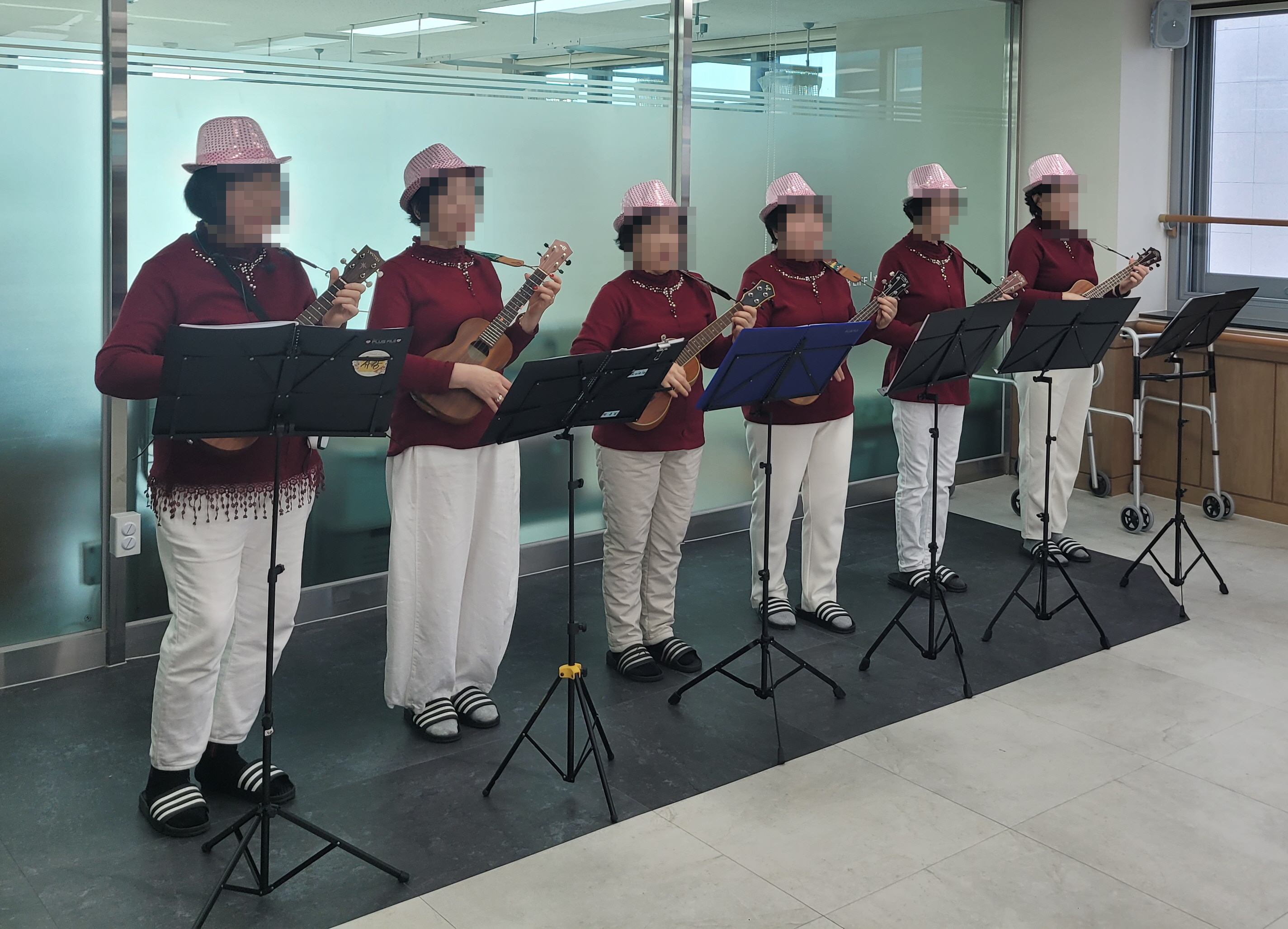 먼저, 생신축하 노래와 함께 단체사진 촬영을 진행하였고 "룰루렐레" 우크렐레 봉사팀과 연계하여 즐거운 우크렐레 공연을 관람하였습니다.
