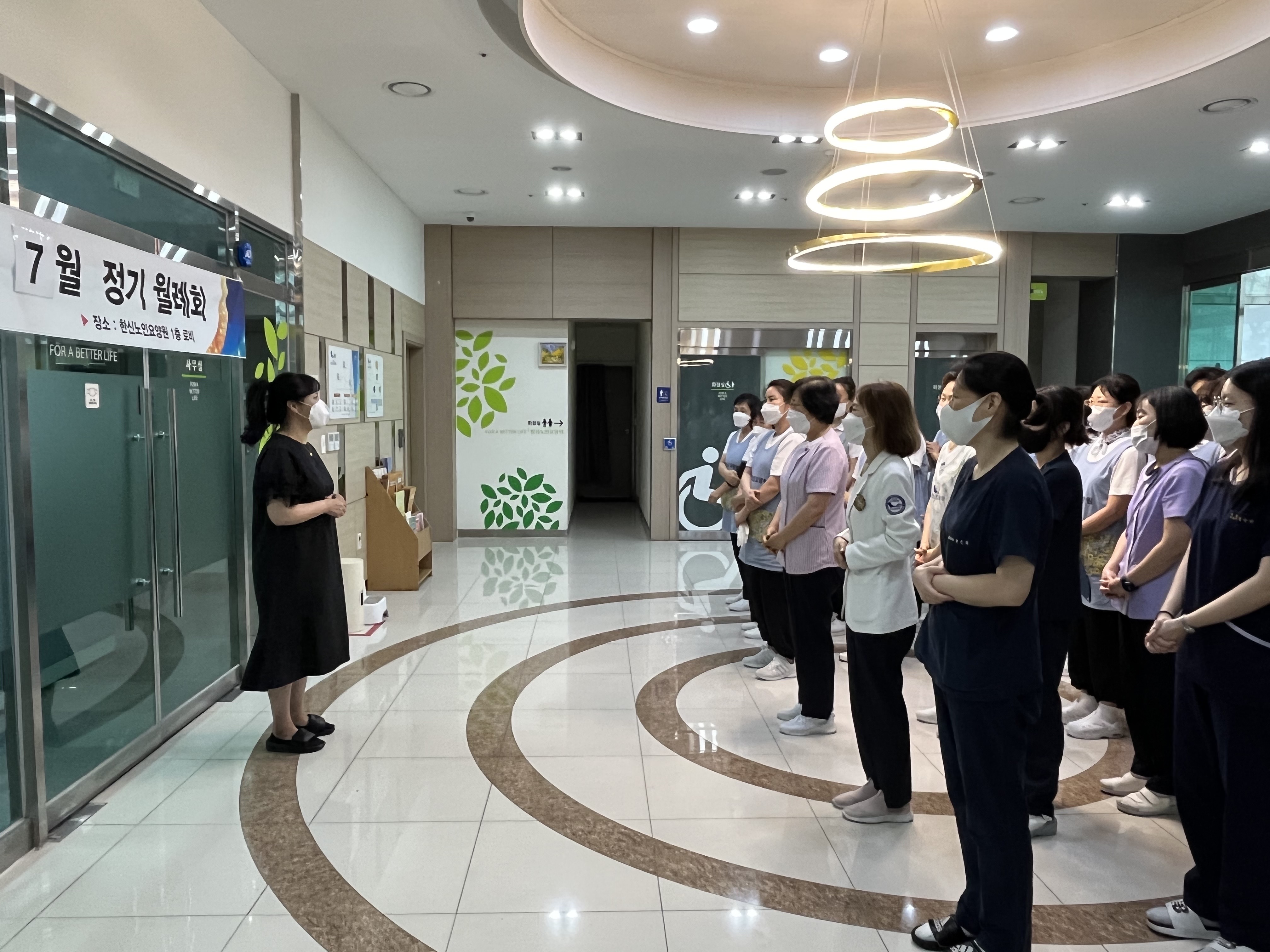 1 2024년 07월 03일(수) 1층 로비에서 월례회를 진행하였습니다.