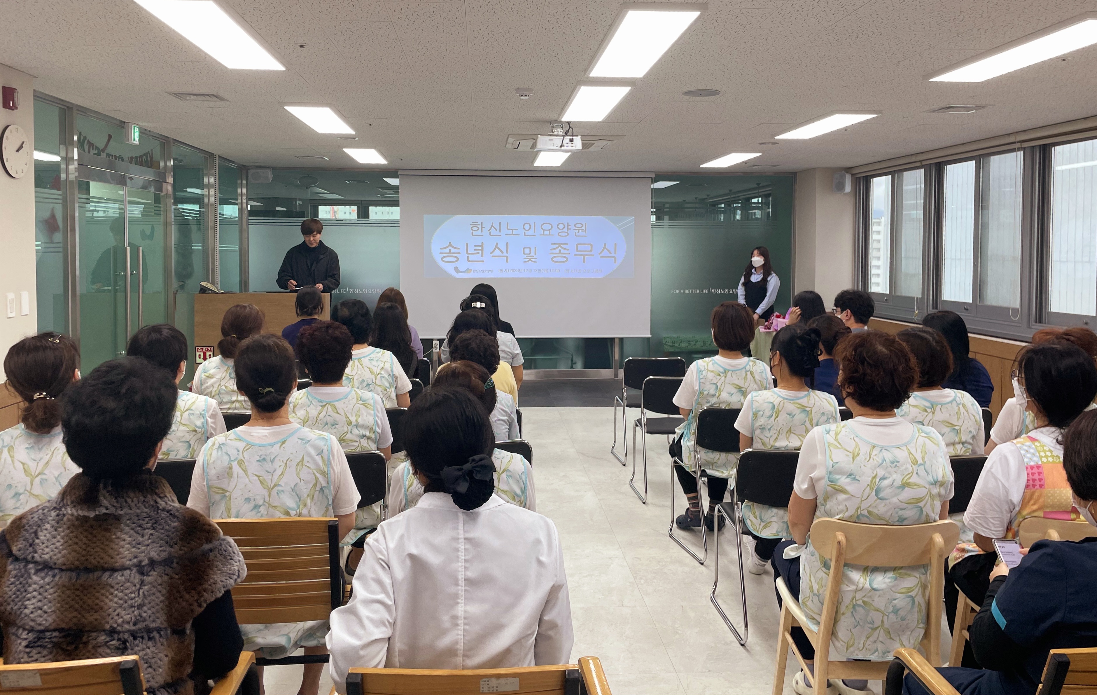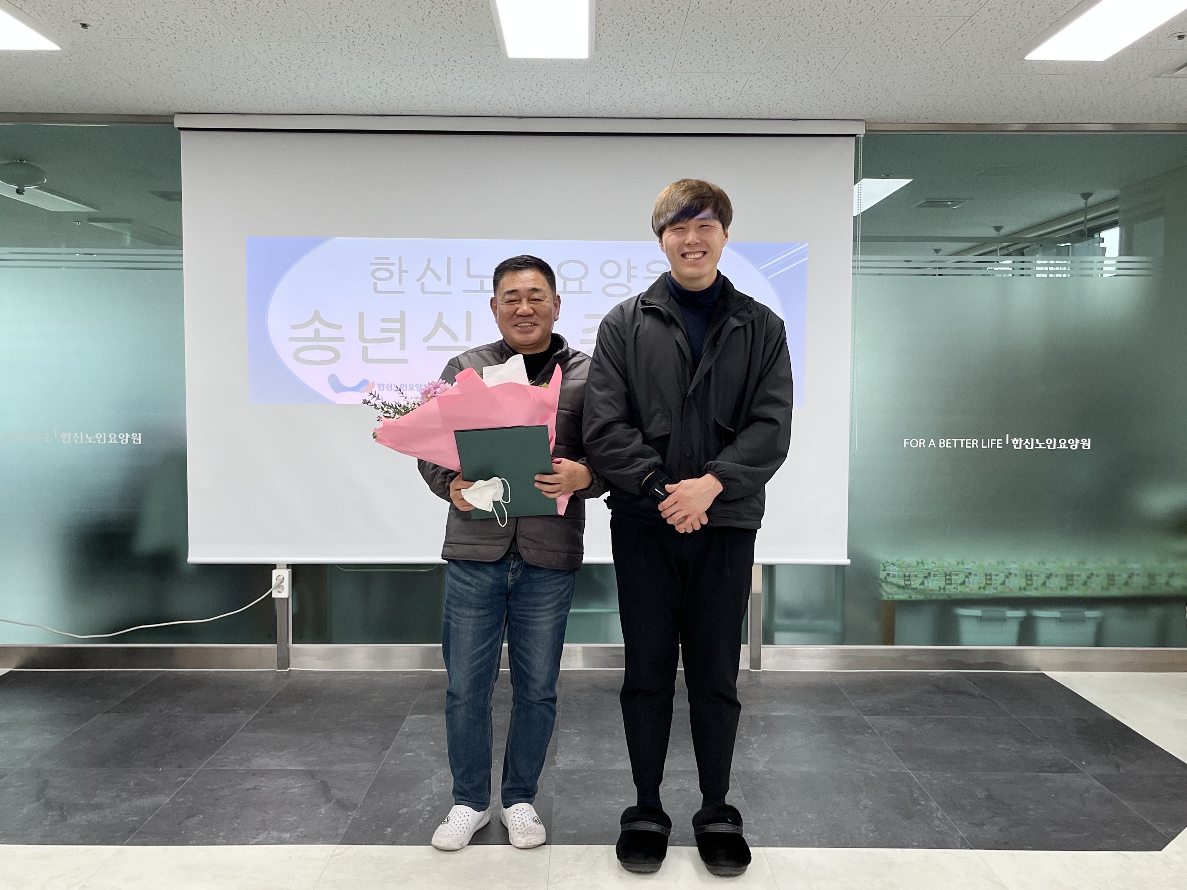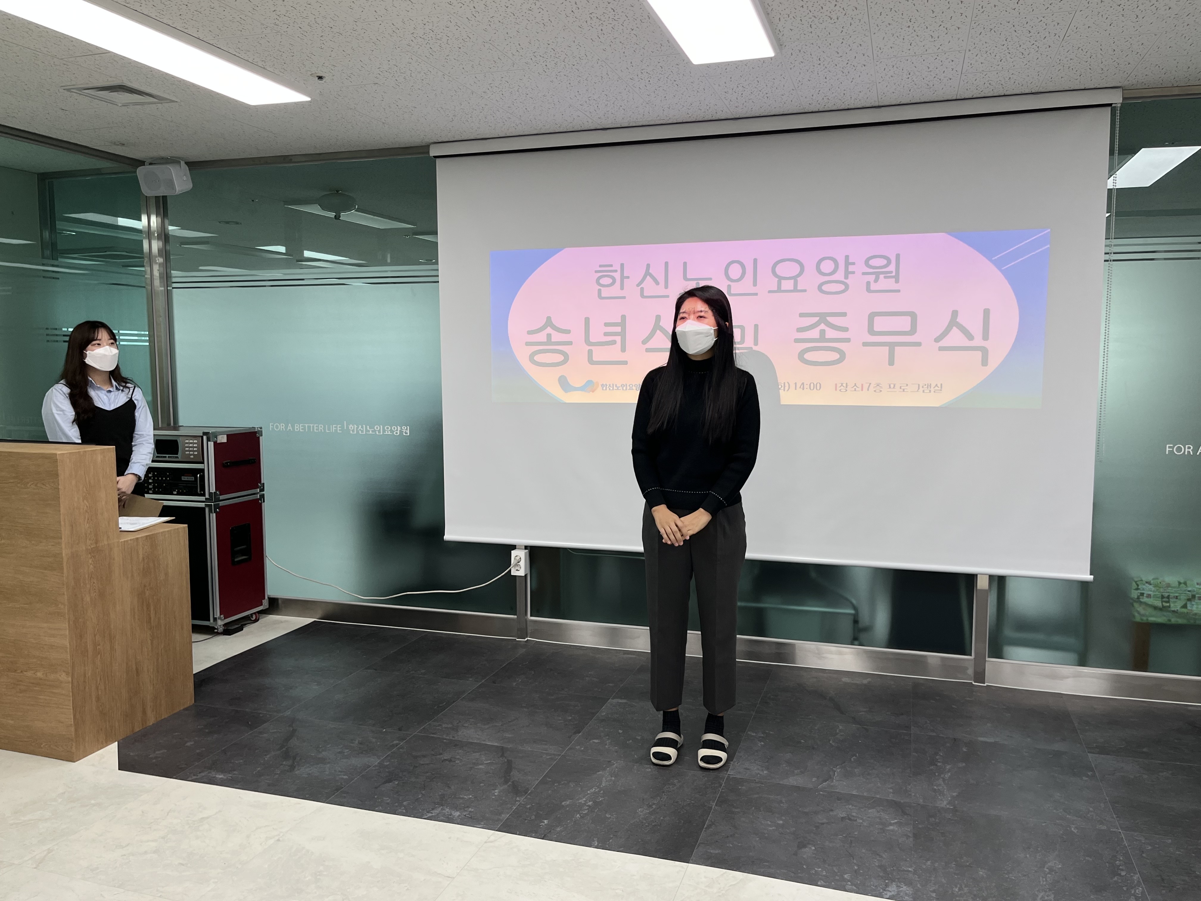 1 2023년 12월 12일(화) 한신노인요양원 7층 프로그램 실에서 송년식을 실시하였습니다.