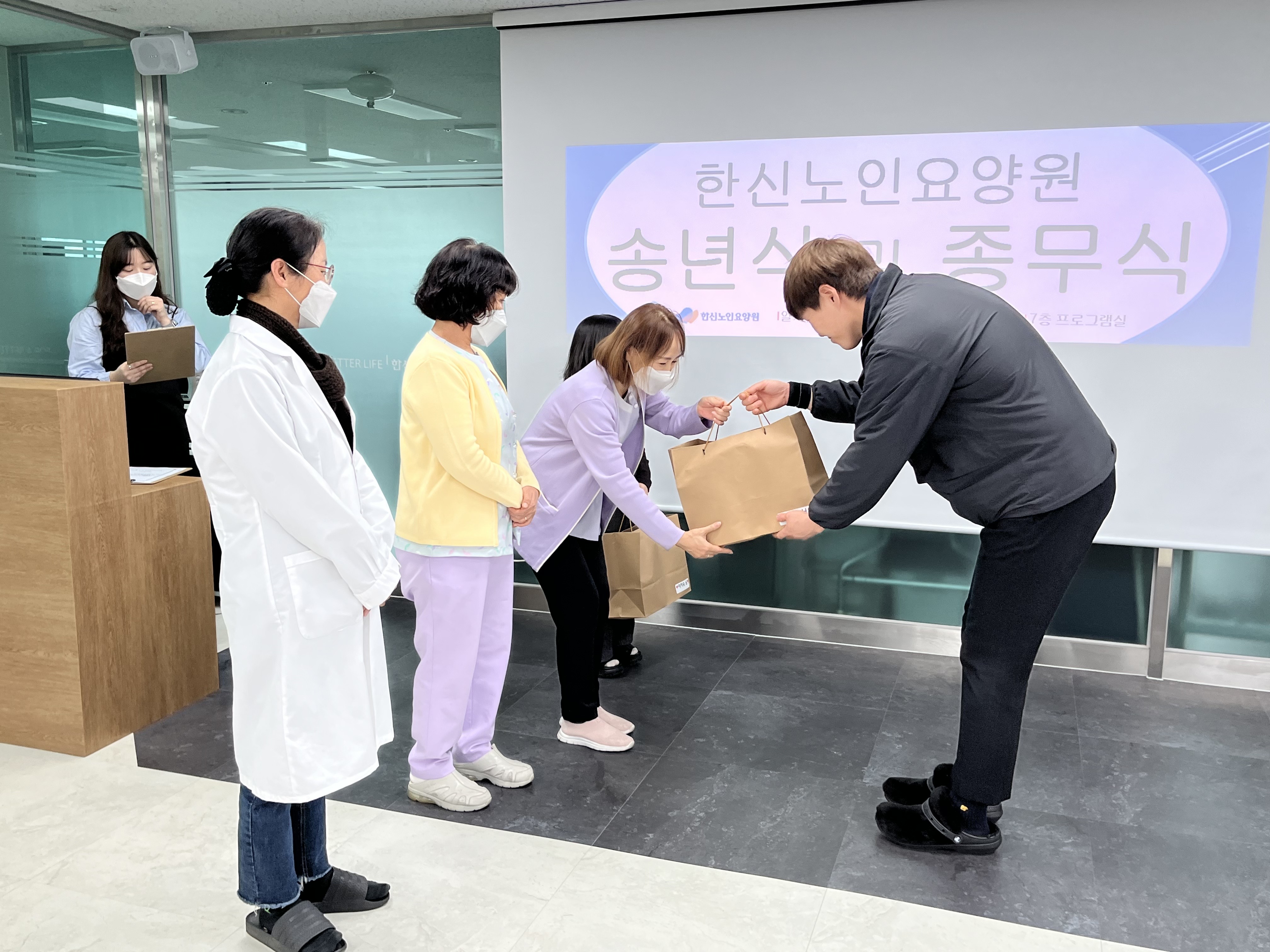 원장님의 개회사로 시작하여 우수 종사자분들께 상장 수여 및 전 직원에게 선물 전달하는 시간 가져보았습니다.