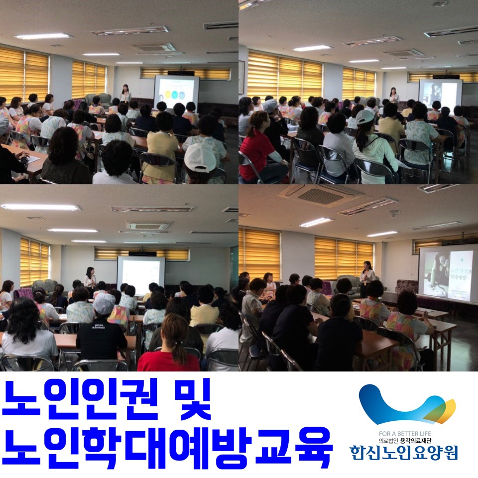 2019년 4월 16부터 4월 17일까지 전 직원들을 대상으로 노인인권 및 노인학대예방교육을 실시하였습니다.