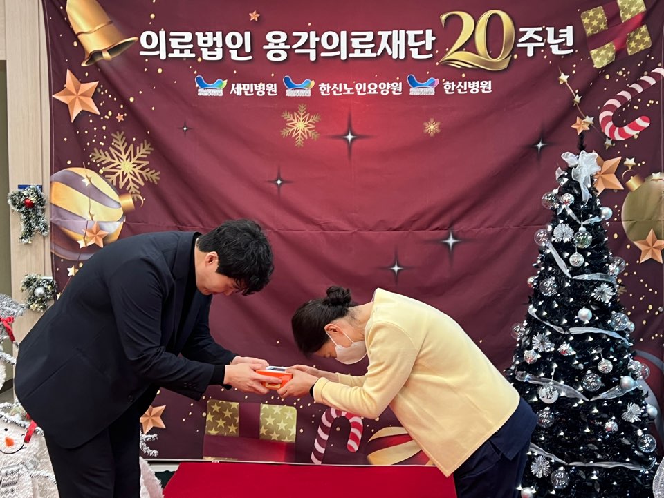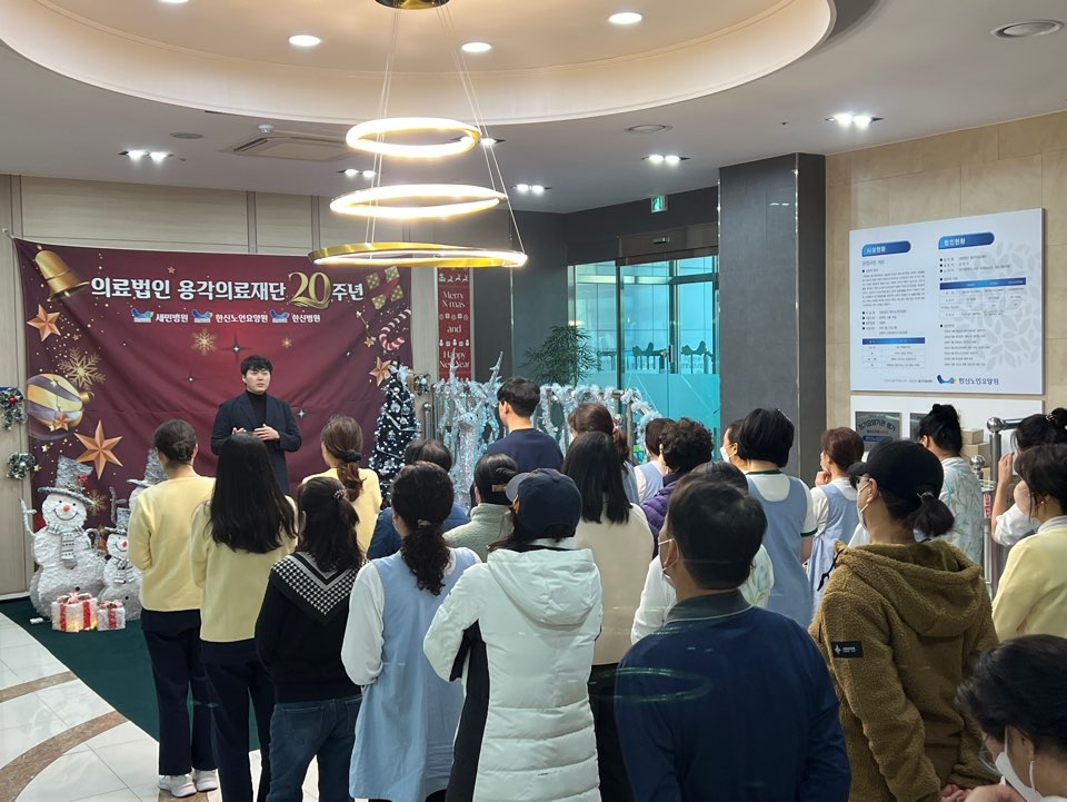 용각의료재단 20주년 기념으로 행정원장님의 감사인사와 고생하시는 직원들에게 선물경품추첨을 진행하였습니다