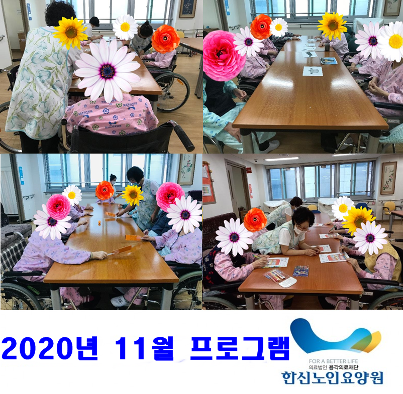 2020년 11월 프로그램 사진입니다. 나만의 휴대폰 만들기, 도구의 소리 듣고 맞추기, 리모컨 모양의 탁구채로 탁구치기, 전기를 사용하는 도구 찾기 등 다양한 프로그램을 진행하였습니다. 어르신들 모두 즐거운 시간을 보내셨습니다~^^