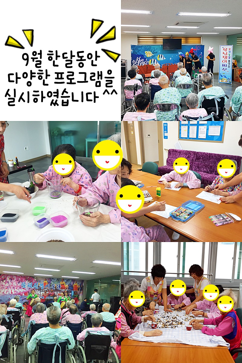 9월 프로그램 한신노인요양원 09-30 1561 9월 한달동안 다양한 프로그램을 실시 하였습니다~^^ 이전글10월 프로그램 16.11.23 다음글8월 나들이 프로그램 (2016.08.26) 16.09.02 댓글 0 댓글목록 등록된 댓글이 없습니다.