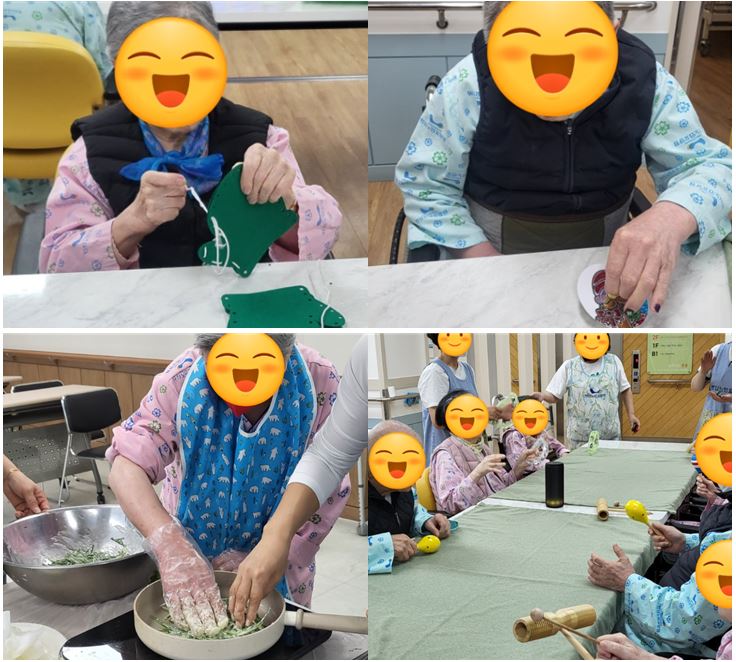 부추전 만들기(요리), 크리스마스 장갑 만들기, 크리스마스 팽이 만들기, 동지 팥죽 만들기, 산타와 루돌프 아가모 그래프, 수족마사지 등 다양한 프로그램을 진행하였습니다.