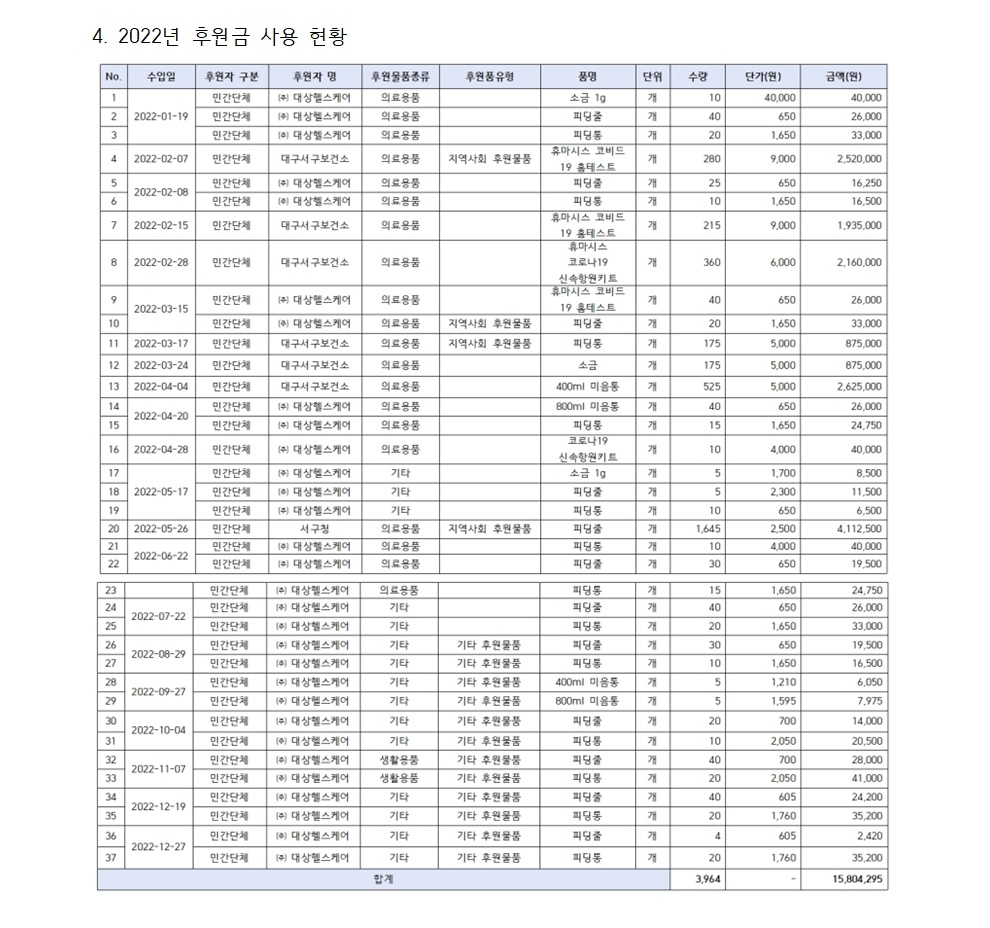 2022년 후원금 수입 및 사용결과 보고서 페이지 정보 작성자 한신노인요양원 댓글 0건 조회 350회 작성일 23-02-07 10:29 목록 본문 2022년 후원금에 관련된 자료를 공지하고자 합니다. 목록 다음글 2021년 후원금 및 사용 내역 21.01.05