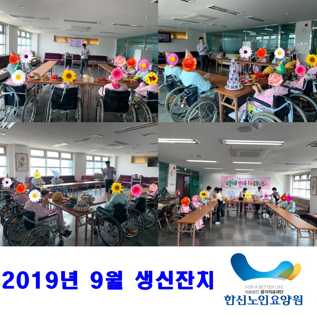 2019년 9월 27일 7층프로그램실에서 어르신 생신잔치를 실시하였습니다. 어르신들 모두 즐거운 시간 보내시면서 원에서 준비한 다과를 맛있게 드셨습니다. 생신을 맞이하신 어르신들 모두 다시 한번 더 생신 축하드립니다 ^^