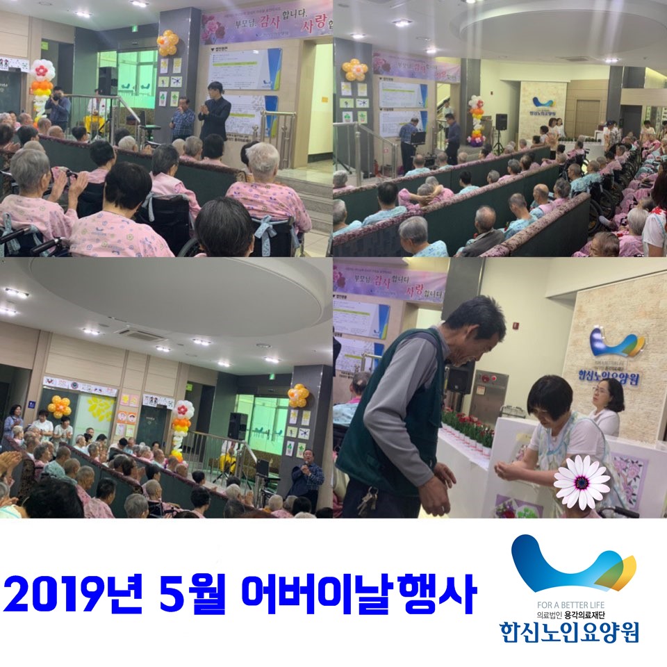 19년 5월 8일 어버이날을 맞이하여 재미있는 공연과 맛있는 다과를 준비하여 행사를 실시하였습니다.