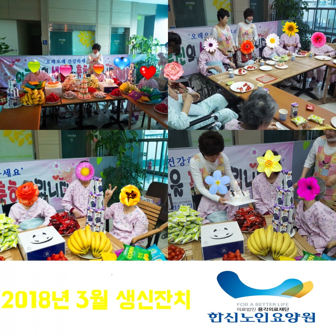 2018년 3월 28일 1층 로비에서 어르신 생신잔치를 실시하였습니다.