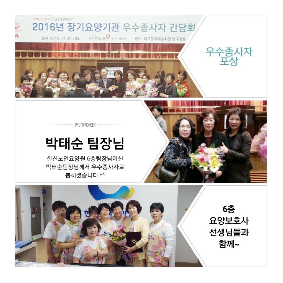 국민건강보험공단 대구지역본부에서 주최한 장기요양기관 우수종사자로 박태순 요양보호사 팀장님께서 뽑히셨습니다!