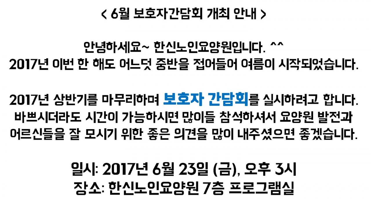 바쁘시더라도 시간이 가능하신 보호자분들께서는 참석하셔서 요양원 반전을 위해