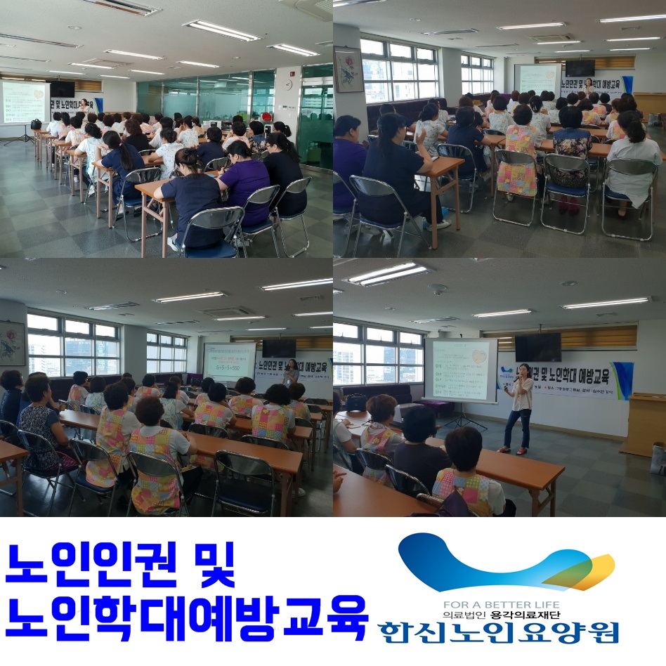 2018년 7월 18일부터 7월 21일까지 전 직원들을 대상으로 노인인권 및 노인학대예방교육을 실시하였습니다.