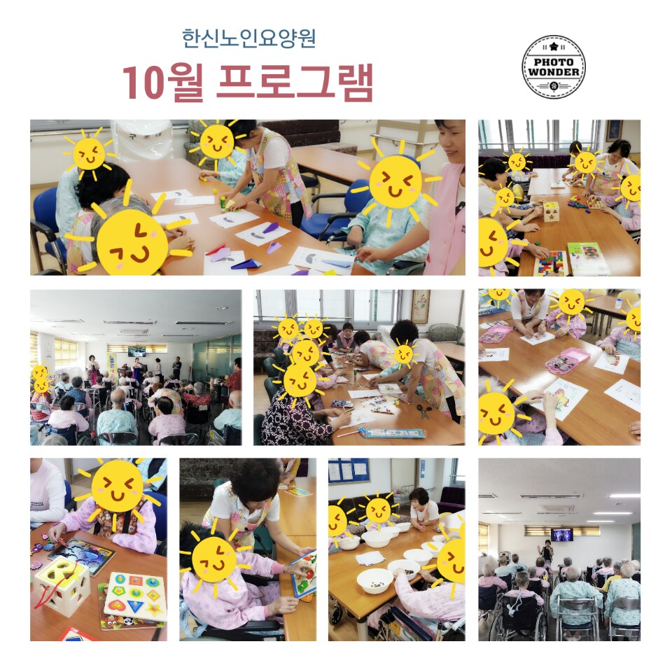 10월 프로그램 한신노인요양원 11-23 1452 10월 퍼즐놀이, 가요교실, 공연단 등 다양한 프로그램을 실시하였습니다~ 이전글2020년 8월 프로그램 20.09.02 다음글9월 프로그램 16.09.30 댓글 0 댓글목록 등록된 댓글이 없습니다.
