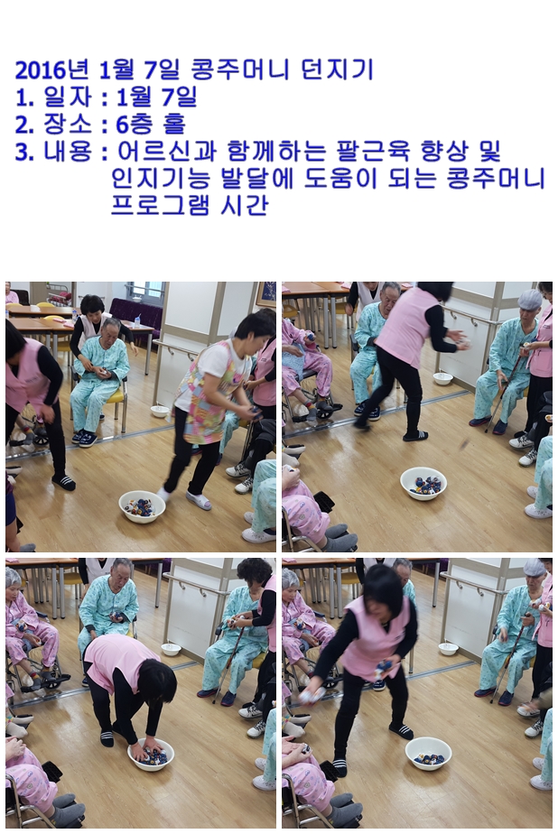 콩주머니 던지기 프로그램(16.01.07) 한신노인요양원 04-25 1213 . 이전글4월 나들이 프로그램(16.04.26) 16.06.09 댓글 0 댓글목록 등록된 댓글이 없습니다.