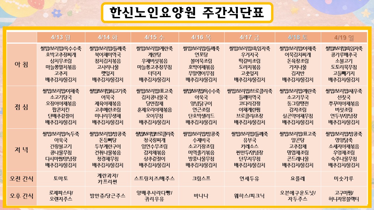- 이전26년 4월 4주차 주간식단표 26.04.17